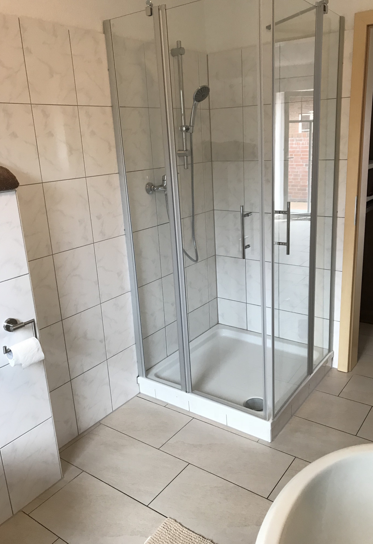 Das Badezimmer ist eingerichtet mit einer Dusche, einem Handwaschbecken, einem Fenster und einem WC. Das Schlafzimmer ist hell und verfügt über einen geräumigen Kleiderschrank, sowie ein Doppelbett (1,80 Meter breit).