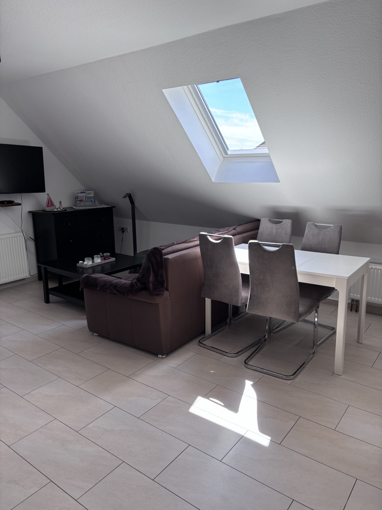 Die Wohnung bietet Ihnen ein großzügiges Wohnzimmer mit integrieter Einbauküche, wo Sie nach Herzenslust kochen können. Ausgestattet ist die Küche mit einem Backofen, E-Herd, Kühlschrank, Spülmaschine sowie Besteck und Geschirr.